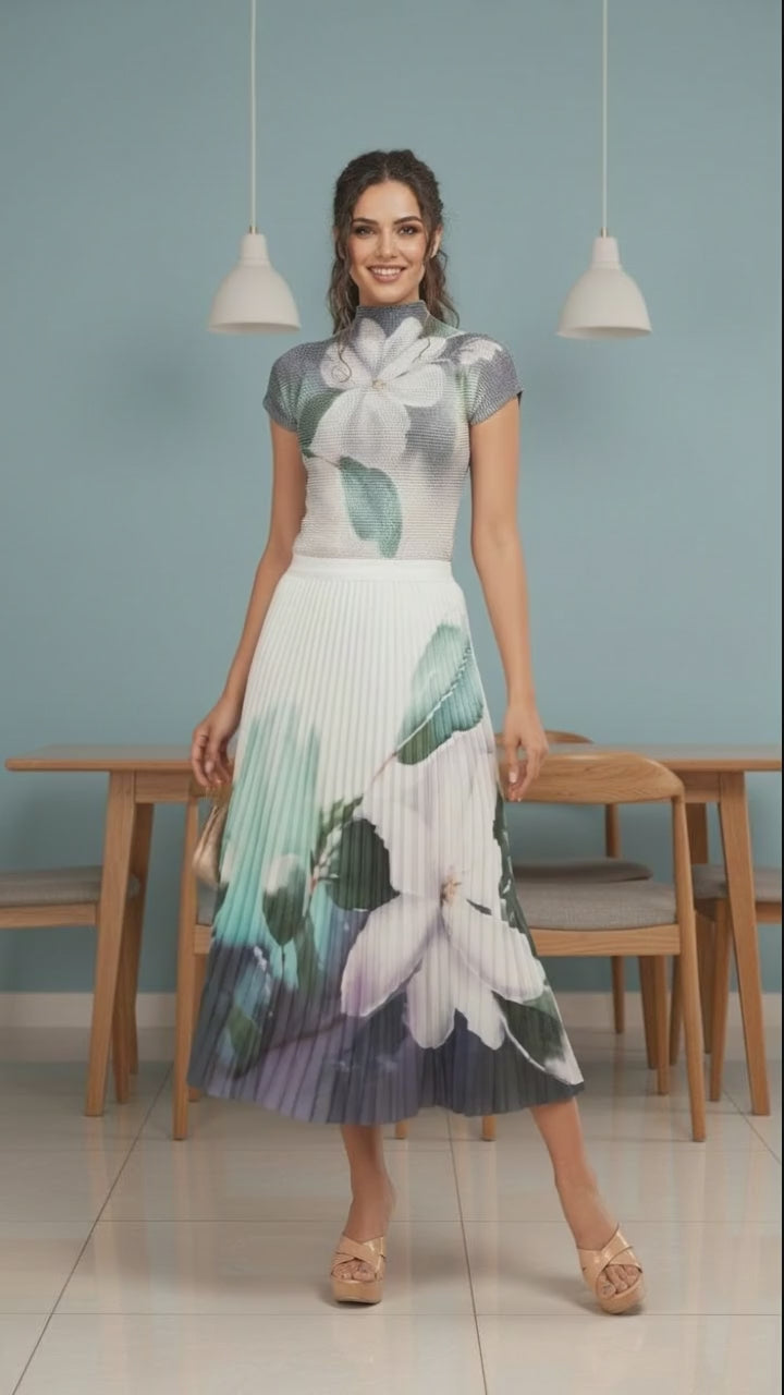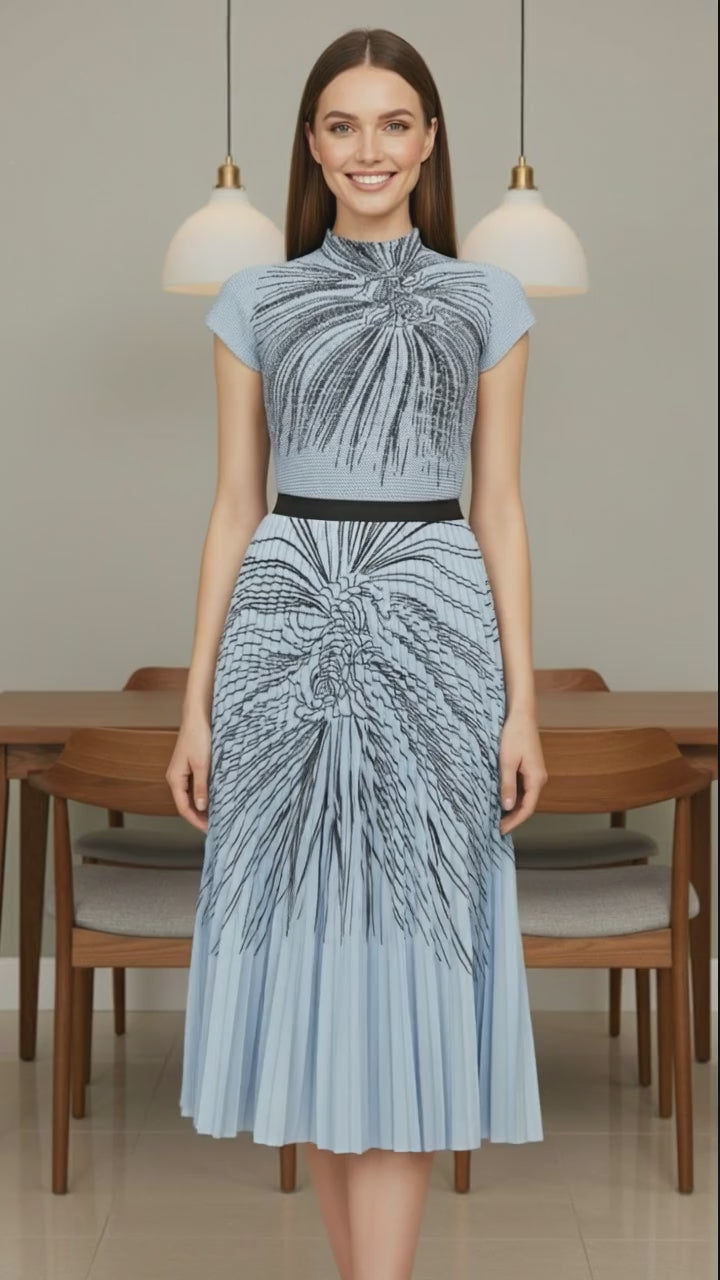 Top Loose Mild Pleated Stretching Skirt Two Pieces Set - Blue