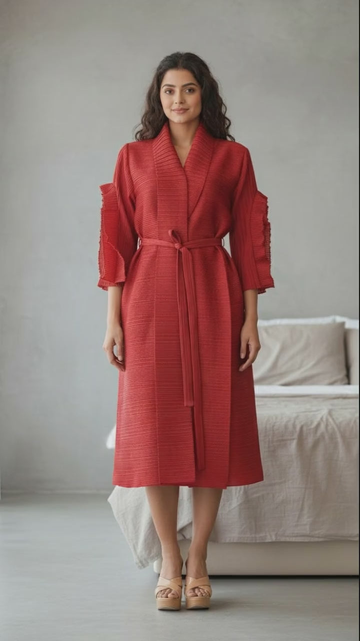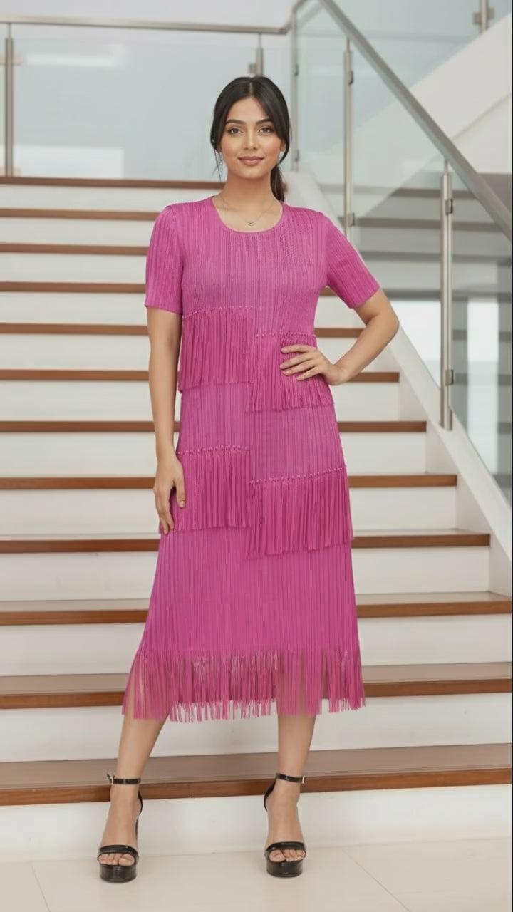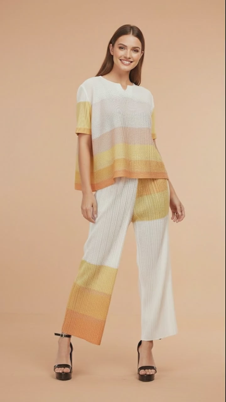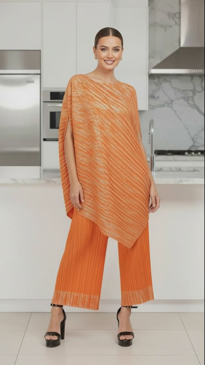 Polyester Metallic Pleated Top And Pant Set - Orange