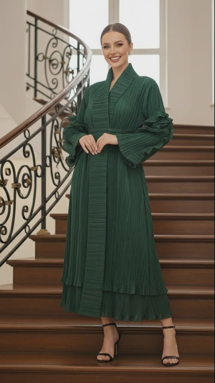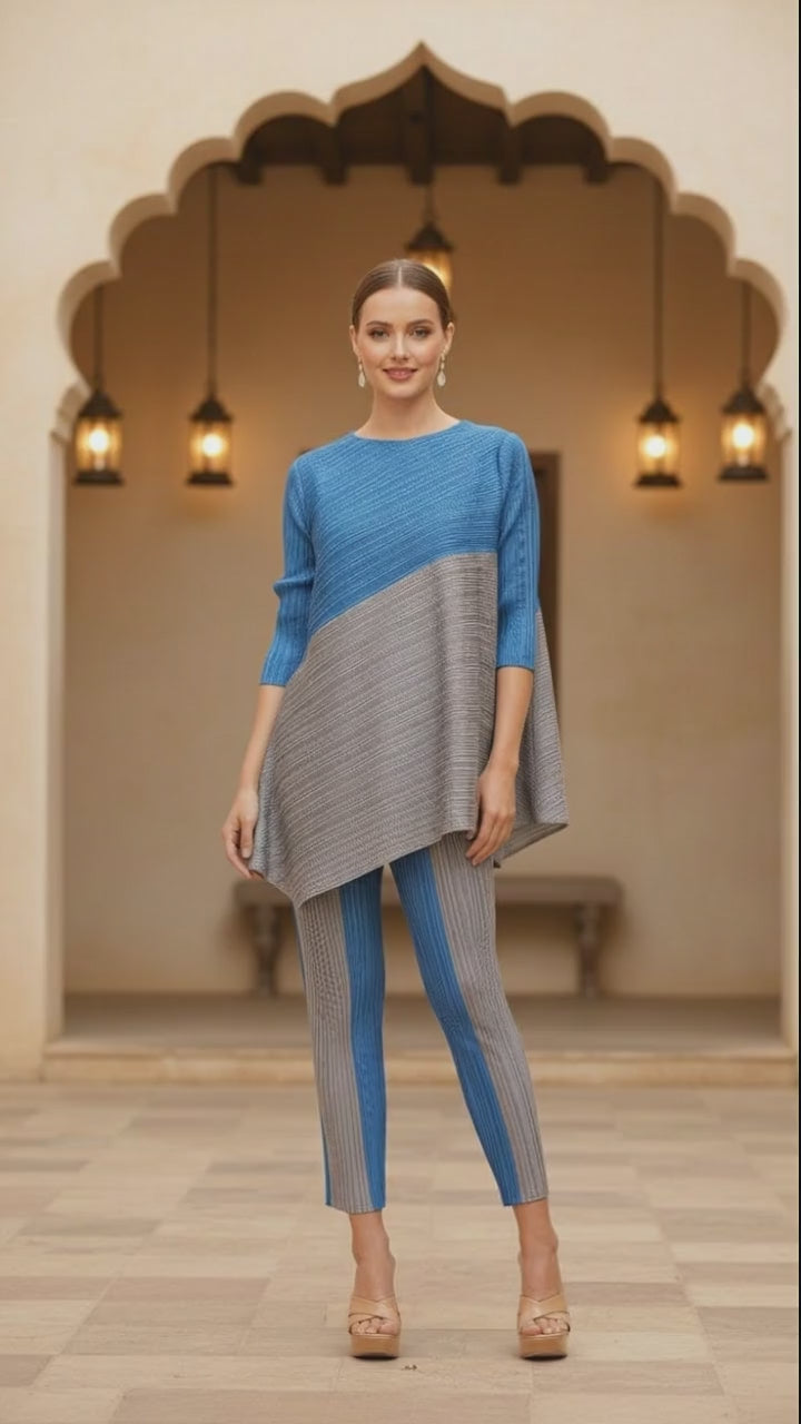 Polyester Metallic Pleated Top And Pant Set - Blue