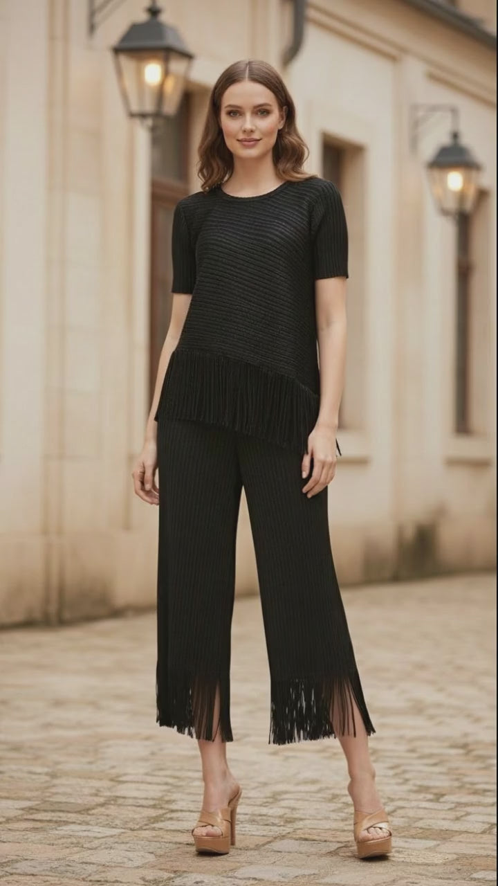 Top Loose Mild Pleated Stretching Skirt Two Pieces Set - Black