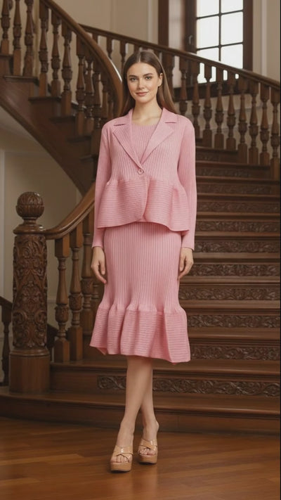 Crew Neck Top Wide Leg Pants - Pink