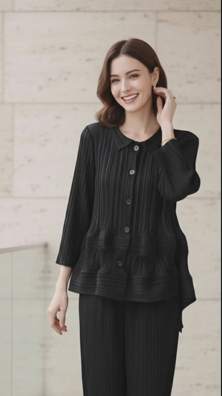 Garnet Polyester Pant Set - Black