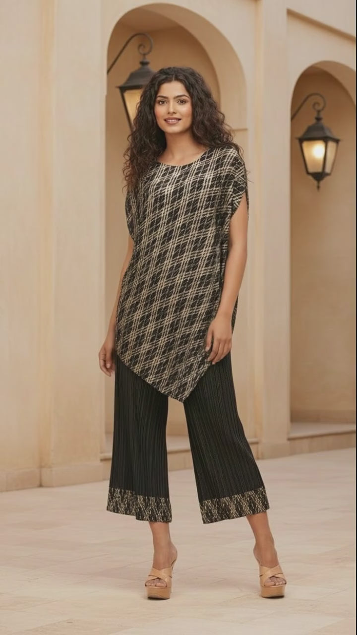 Polyester Metallic Pleated Top And Pant Set - Black