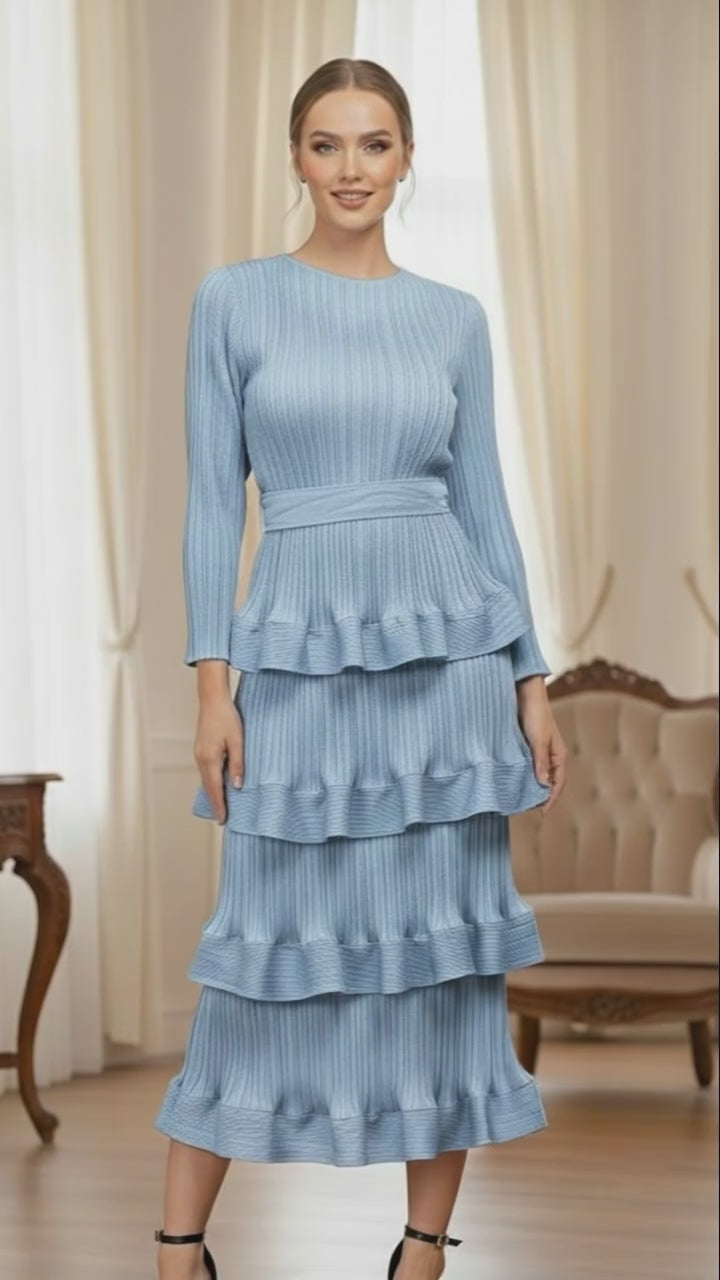 Spring Design Cake Slim Stitching Casual Party - Blue