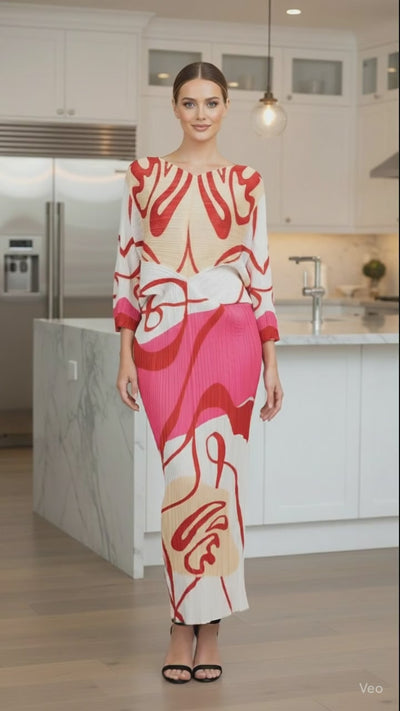 Tangerine Crepe Digital Printed Co-Ord Set - Red Rose