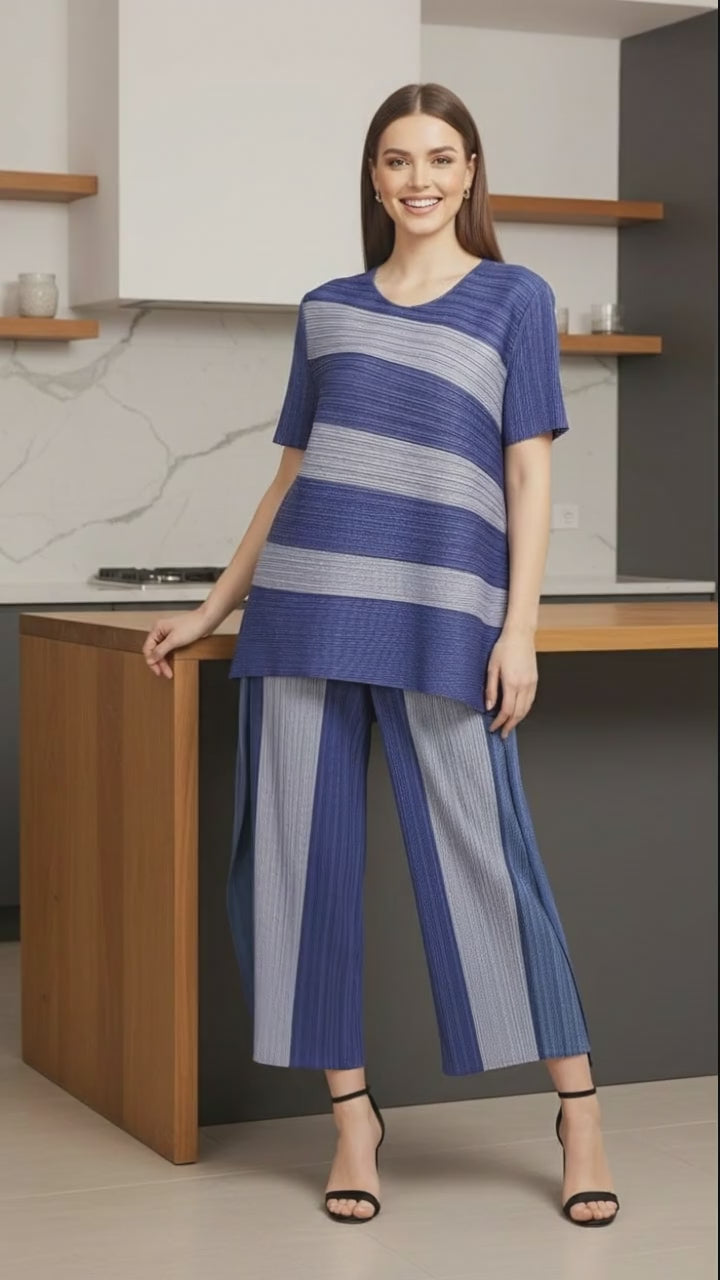 Top Loose Mild Pleated Stretching Skirt Two Pieces Set - Blue